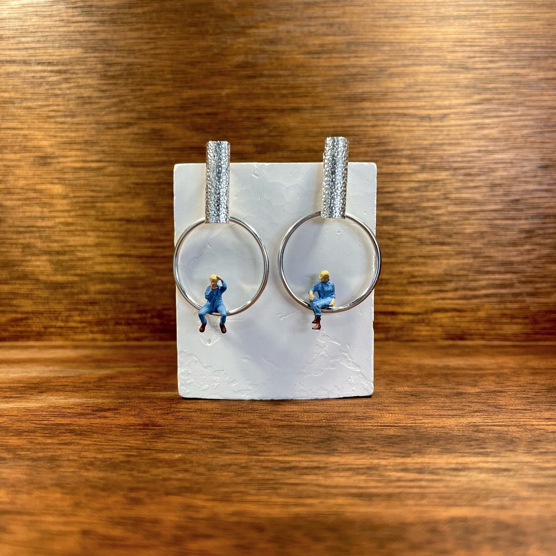 Hand-made sterling silver earrings featuring individually selected, hand-painted tiny people.