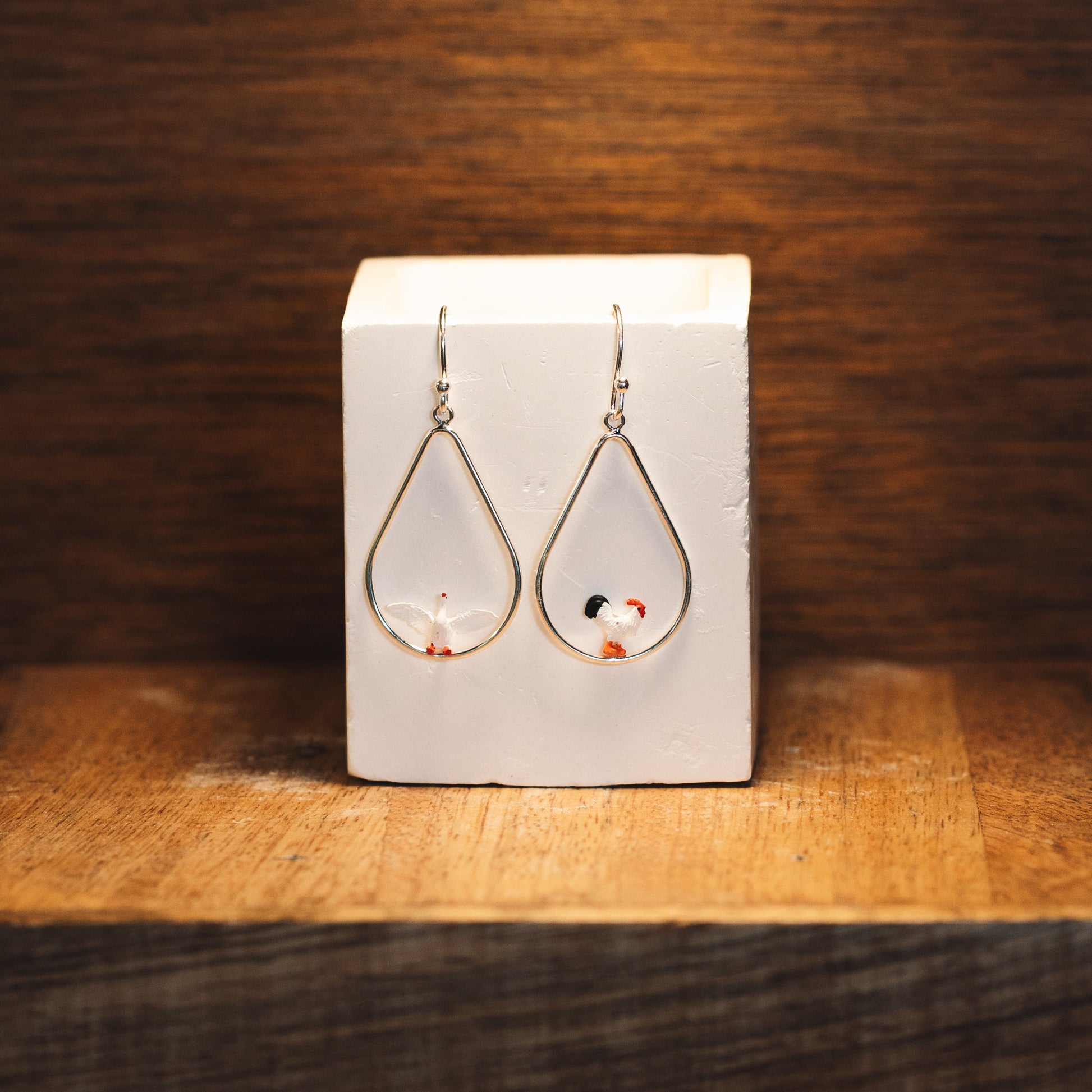 Hand-made sterling silver earrings featuring individually selected, hand-painted tiny birds.