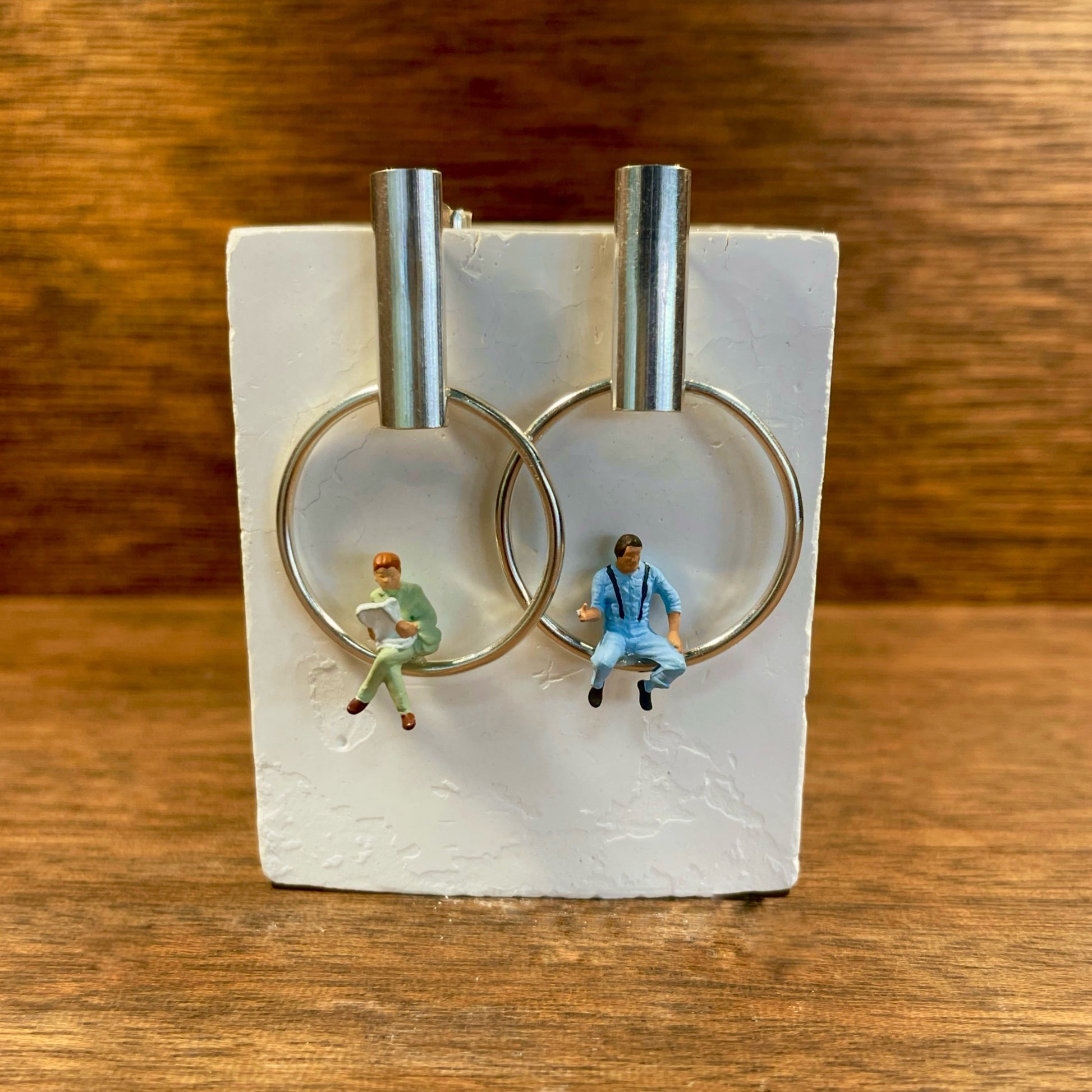 Hand-made sterling silver earrings featuring individually selected, hand-painted tiny people.