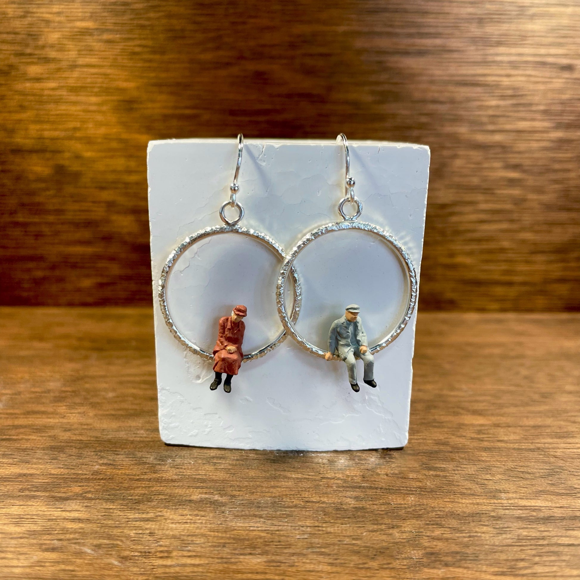 Hand-made sterling silver earrings featuring individually selected, hand-painted tiny people.